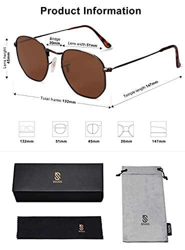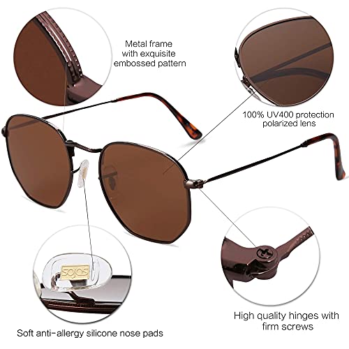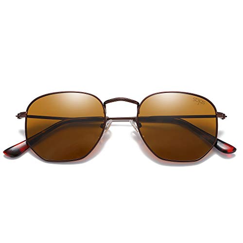 SOJOS Retro Vintage Specchio Polarizzate Lenti Poligono Protezione UV Occhiali da Sole SJ1072 Con Caffè Telaio/Marrone Lente