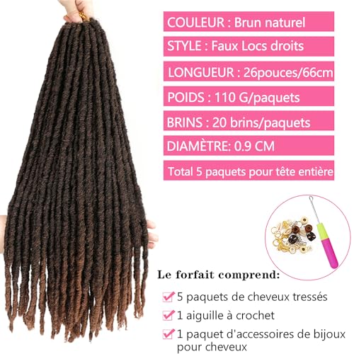 SOKU Lunga Linea Retta Falsi Locs Uncinetto Capelli 5 Pacchetti/lotto Dreadlocks 66cm Uncinetto Trecce Dolce Ombre Marrone Uncinetto Locs Intrecciatura Estensioni Dei Capelli Dreadlocks Sintetici