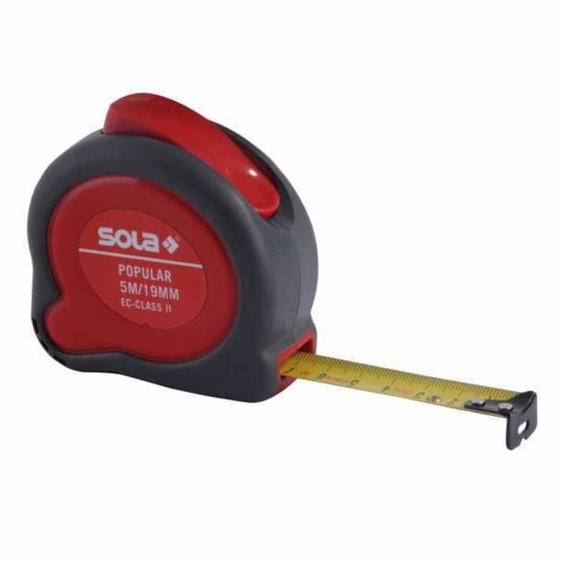 Codice: 9002719012733 Marca: SOLA. Cassa ABS con impugnatura gommata antiscivolo Nastro acciaio laccato giallo Evidenziazione millimetri in rilievo Riavvolgimento automatico nastro Gancio mobile misurazione interna/esterna
