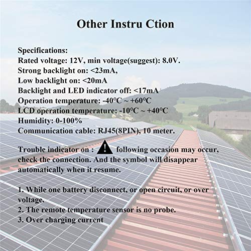 SolaMr Renote Meter for Duo-Battery Solar Charge Controller with 10 Meter Cable for EPIPDB-COM Series (MT-1)