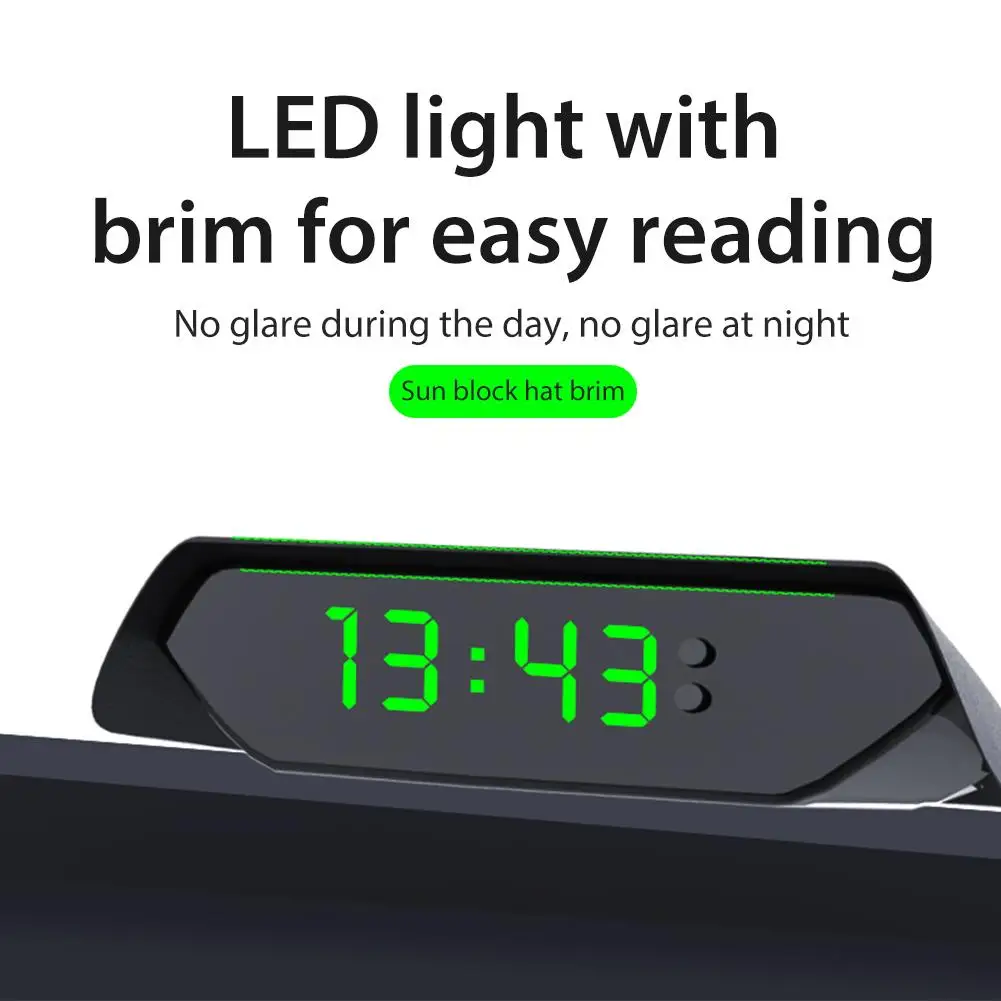 4 In 1 Car Solar Clock Thermometer Luminous High-precision Electronic Watch Temperature Monitor Auto Clock for Car Decoration