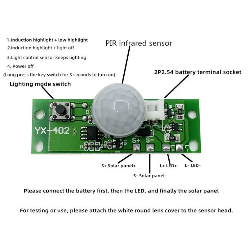 3.7V DIY Kit Solar Lamp Panel Circuit Board Control Sensor Night Light Module Controller Module Infrared Body Motion Module