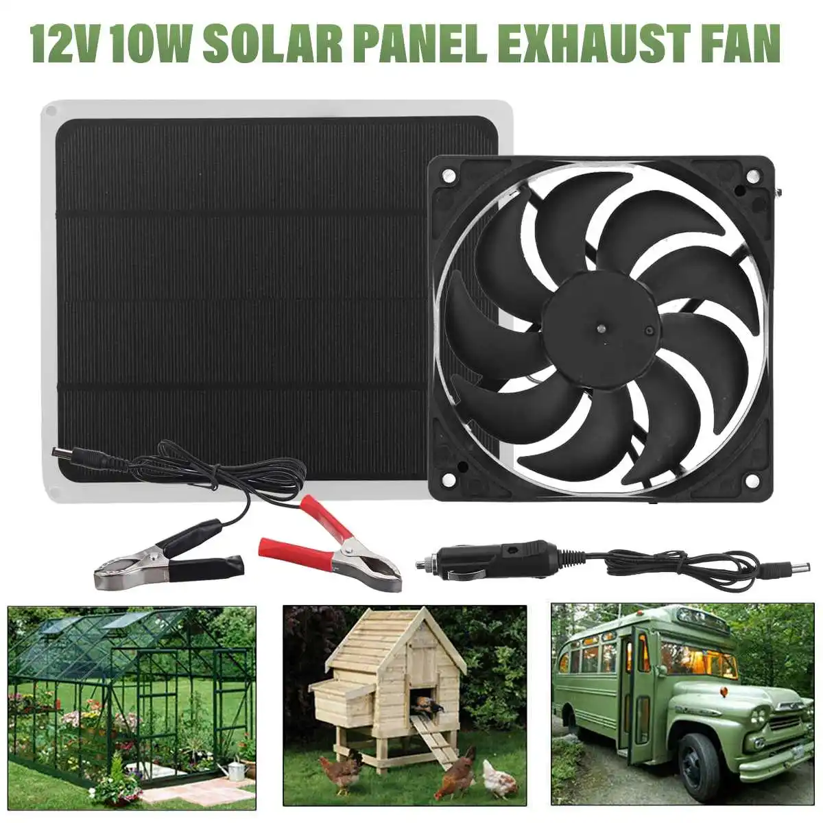 USB Solar Panel Powered Fan 12V 10W Solar Mini Ventilator for Pet House Greenhouse RV Roof Exhaust Fan Car Charger Clip Cable