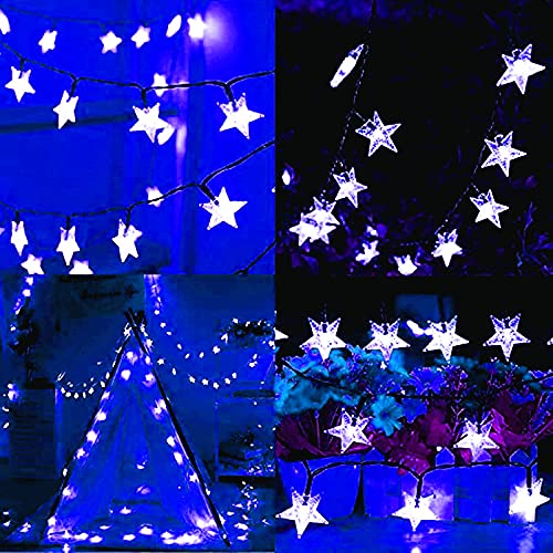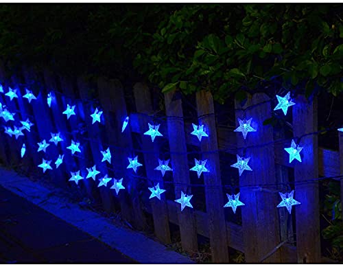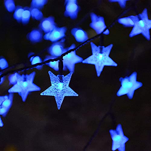 Solar Star String Lights, EONYUANGUO 23ft 50LED Star Fairy Lights Impermeabile Starry Fairy String Light per la festa di Natale Outdoor Outdoor Garden Decoration (Blu)