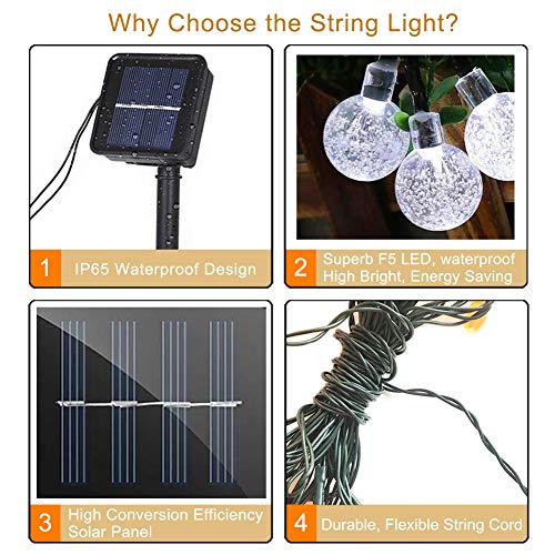 【IP65 impermeabile】 Tutte le luci fata stringa e il pannello solare sono impermeabili e resistenti al calore. Design per uso esterno, le luci del giardino solare possono funzionare anche in una giornata piovosa. Durevole e sicuro da usare, il LED è più di 10000 ore di vita.