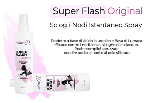 Solaro H Super Flash Sciogli Nodi Istantaneo Spray per Cani e Gatti 250ml Districante All'Acido Ialuronico e Bava di Lumaca Pelo Libero da Nodi e Feltri Non Unge Senza Siliconi
