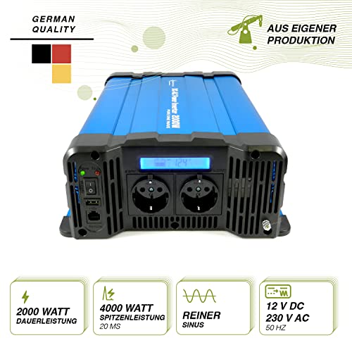 Solartronics Convertitore di Tensione FS2000D 12V 2000/4000 Watt Onda Sinusoidale Pura Blu M.Schermo FS Serie Inverter