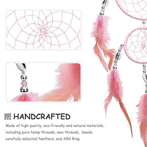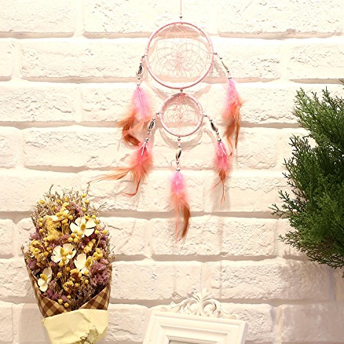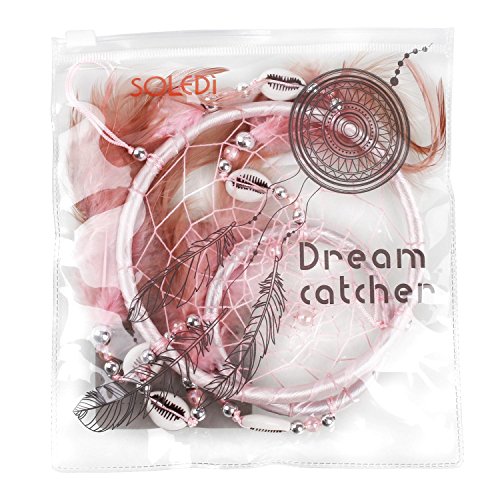 Soledi - Acchiappasogni, ornamento sospeso circolare doppia rete, anello con piume, decorazione a maturo per camere e interni, idea regalo
