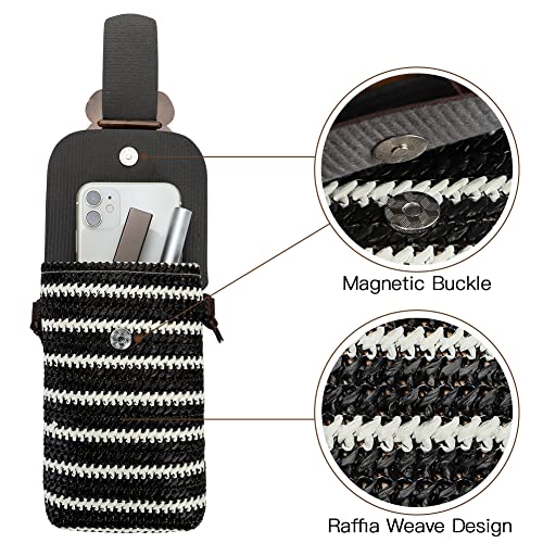 Soleebee Borsa a tracolla per cellulare in stile boho, intrecciato, in pelle PU, da donna, con tracolla rimovibile, per cellulare sotto i 7 pollici, colore nero