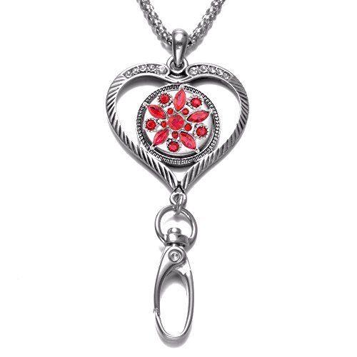 Soleebee sostituibile Collana d'Argento Cuore d'Amore Porta Tessera Porta Cordino Collana per Chiave, portacarte con 6 Pezzi Lega Strass Bottoni a Pressione (Fiori di Strass)