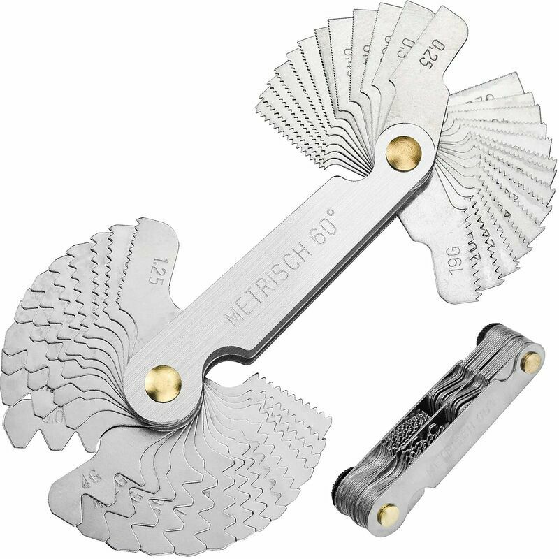 MISURA - : calibro filettatura metrico (mm) 60°+Whitworth-55° 【QUANTITÀ】: calibro passo filettatura metrico (mm) 60° , 24 pezzi. Whitworth - 55°, 28 lame centrali. 【MISURAZIONE PRECISA】: i bordi seghettati sono chiaramente contrassegnati. I numeri sono precisi e di facile lettura. 【USI】: Generalmente utilizzato per controllare la corretta dimensione della filettatura interna ed esterna e il passo del dente, la rettifica e il posizionamento della filettatura della vite. #39;