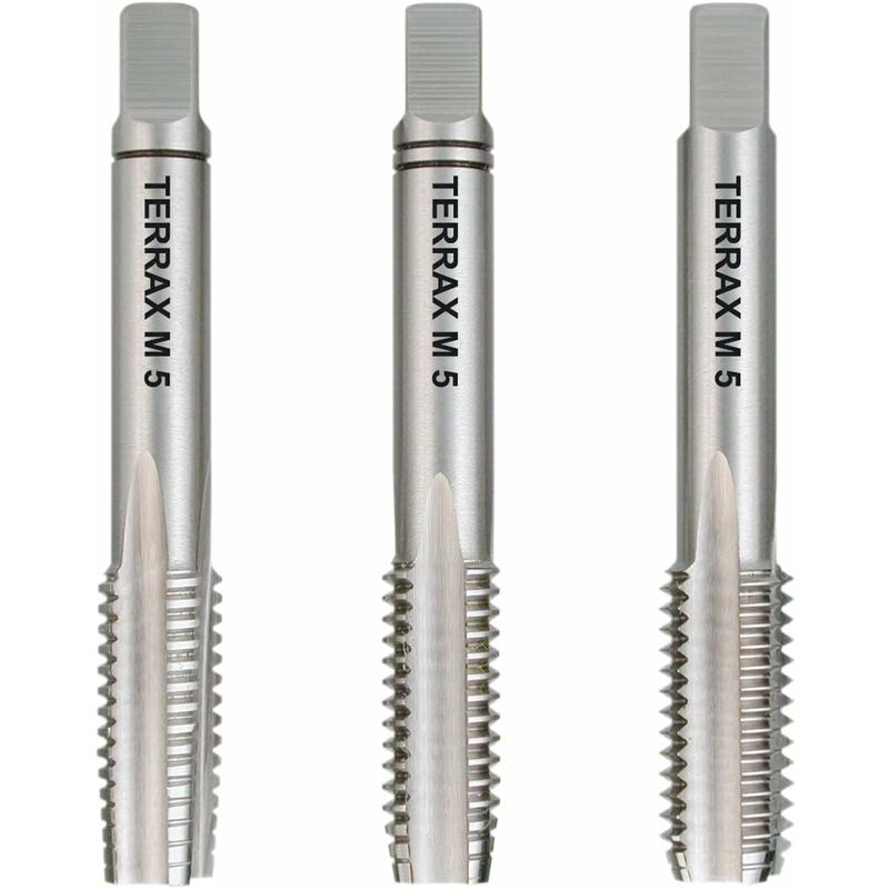 Acciaio legato HSS di alta qualità Per filettatura metrica da M5 a M 0.8 secondo ISO 13 Set che include utensili di sgrossatura, intermedi e finitura Filettatura eseguita in tre fasi. Diametro pilota: 5 mm. Nota: fino alla taglia M6, questi maschi hanno una punta. I rubinetti sono dritti per le dimensioni maggiori.