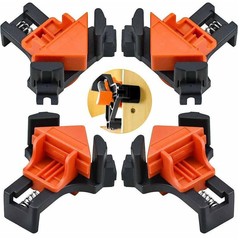 Morsetto angolare ideale per collegare angoli retti. - I pannelli e i telai possono essere fissati rapidamente e facilmente a 90 °. 【Materiali di qualità.】 I morsetti angolari per carpenteria sono realizzati con materiali di alta qualità, resistenti e possono essere lavorati più volte senza danni. 【Molla resistente.】 I morsetti in legno hanno un'elevata tensione della molla e possono essere tenuti in posizione quando le schede vengono fissate o incollate insieme. 【Morsetto angolare regolabile.】 Adatto per pannelli con uno spessore da 5 a 22 mm e giunti a T, si applica anche all'assemblaggio di due pannelli di diverso spessore. 【Facile da usare.】 È possibile aprire il dispositivo ad angolo retto con una mano e utilizzare l'altra per fissare e posizionare liberamente il pezzo, risparmiando tempo di lavoro e riducendo il carico di lavoro. Caratteristiche - I morsetti in legno sono realizzati con materiali di alta qualità, il che conferisce loro una lunga durata. - Il morsetto a 90 gradi