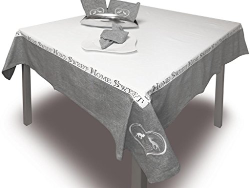Soleil d'ocre 814707 Tovaglia quadrata ricamata in cotone 180 x 180 cmSWEET HOME Grigio, diSoleil d'Ocre