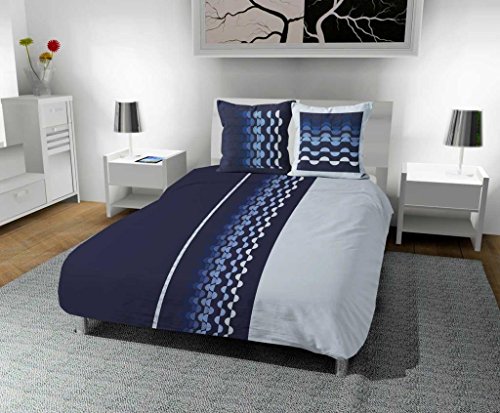 Soleil d' Ocre - Parure Copripiumino Matrimoniale, Poliestere, blu, 240 x 220 x 1 cm