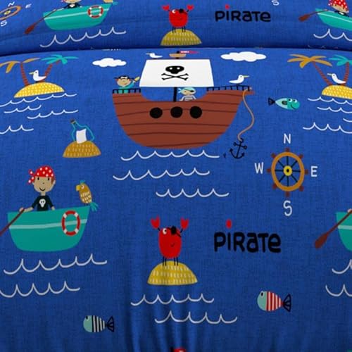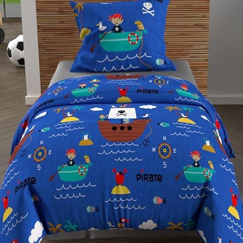 Soleil d'ocre Pirates Parure copripiumino per lettino, 100 procenti cotone 57 fili/cm2, 120 x 150 cm, blu