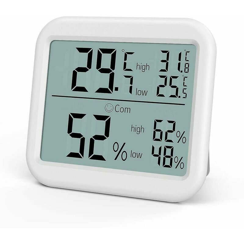 Umidità: 1% Alimentato dai seguenti dispositivi: 2 batterie AAA (non incluse) Modalità di visualizzazione: LCD Dimensioni (lunghezza x larghezza x altezza): 10,5 x 9,5 x 2,5 cm / 4,13 x 3, 74 x 0,98 pollici Lista di imballaggio: 1 x Termometro igrometro da interno