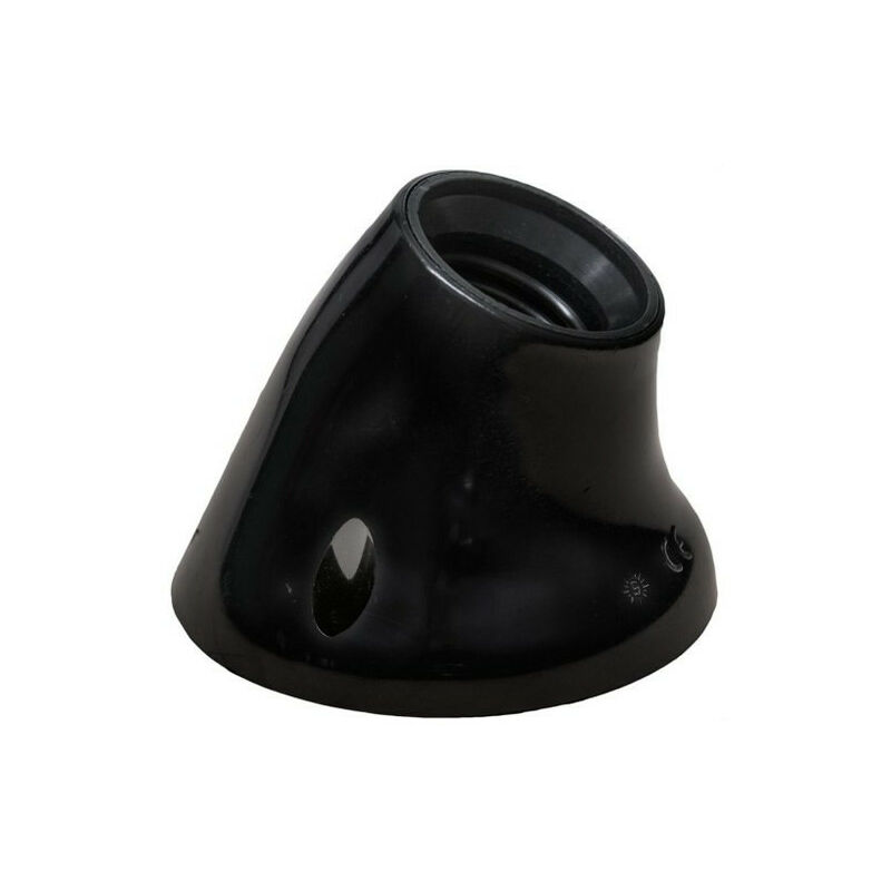 Portalampada nero per installazione su superfici, filettatura E-27 4A 250V, materiale termoplastico, interno in resina termoindurente, presa curva, potenza massima 40W.