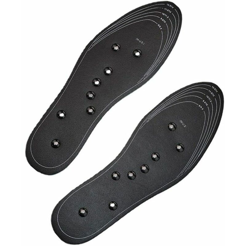 Utilizzando un magnete naturale che si adatta con precisione a ciascun punto di agopuntura sulla suola, è possibile massaggiare la pianta del piede, favorendo la circolazione sanguigna e migliorando la qualità del sonno. L'uso frequente di questa soletta da massaggio può prevenire e resistere a malattie del piede, fascite plantare, dolore alla caviglia, punte del tallone, neuroma di Morton, borsiti, gambe, ginocchia e altri problemi. Realizzato in pelle di alta qualità ed EVA, non facile da deformare e danneggiare per una maggiore durata. Può essere tagliato liberamente secondo la linea di taglio posteriore. Basta posizionare il piede sulla suola massaggiante e tagliare alla misura del piede per ottenere la taglia che si adatta meglio a te. Applicabile a tutti i tipi di scarpe da uomo e da donna, come scarpe da corsa, scarpe da lavoro, scarpe sportive, scarpe eleganti, pantofole e scarpe piatte. Caratteristiche: Aiuta efficacemente con dolore al tallone, sperone calcaneare, fascite