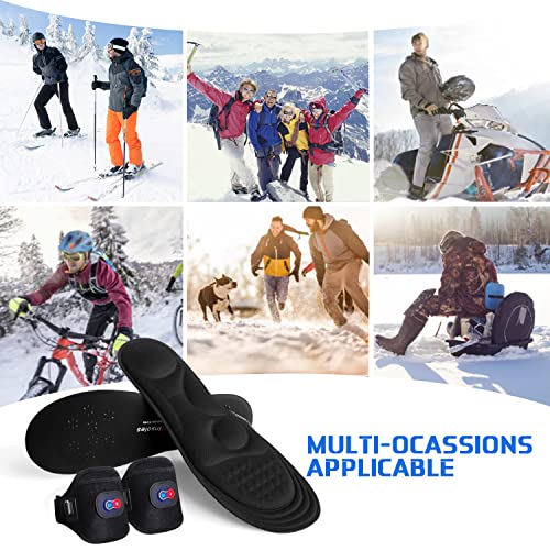 【Sistema di riscaldamento avanzato】 Le solette riscaldanti sono realizzate in materiale riscaldante nanometrico di titanio, lavabile, resistente alla flessione e al riscaldamento immediato, la suola riscaldante raggiunge un massimo di 131 ° F in 5-10 minuti. La batteria è fissata alla caviglia con nastro in velcro. È equivalente a uno scaldapiedi mobile.