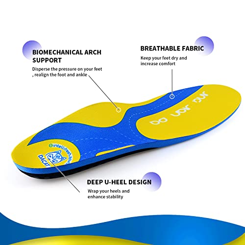 Sollievo dal dolore ai piedi: le solette ortesi con supporto per l'arco plantare rigido e una profonda coppa del tallone a U mantengono i piedi correttamente posizionati per fornire stabilità, aiutano ad alleviare il dolore al piede dovuto a fascite plantare, piedi piatti, iperpronazione, arco caduto, dolore al tallone, dolore all'arco e dolore al piede.