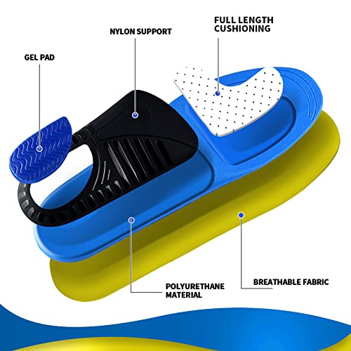 Metriali premium: le solette per il supporto dell'arco plantare da uomo sono realizzate con più strati di materiali ammortizzanti. L'inserto rigido in nylon per il supporto dell'arco plantare fornisce stabilità e supporto al tuo piede. La schiuma PU e la schiuma E-TPU e l'imbottitura in gel offrono un eccellente assorbimento degli urti per proteggere i piedi durante un'attività atletica, in piedi o camminando. Tessuto traspirante mantiene i piedi asciutti.