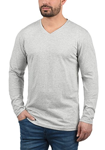 Solid Beda - Maglietta da uomo a maniche lunghe, con scollo a V, Grigio chiaro Melange (8242), XL