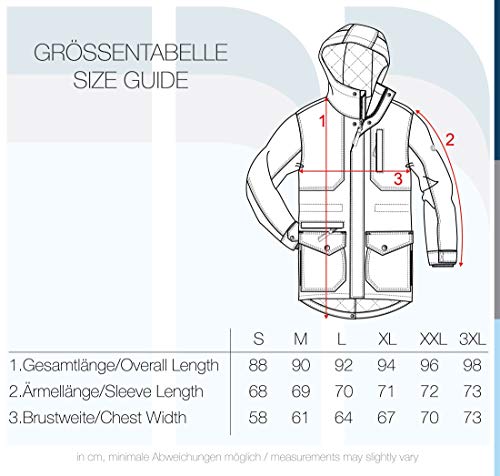 dettagli: Imbottitura interna (trapuntato), alta cappuccio richiudibile con protezione mento, taschino, due tasche risvolto con pulsante, pratiche tasche laterali, una tasca interna, polsini regolabili con Bottoni a pressione, Polsini elasticizzati, dietro allungato, numerose applicazioni in pelle artificiale, patch in pelle artificiale sulla manica, coulisse interna regolabile