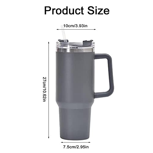 Solid Color Simply Modern 1200 ML Tumbler Hot and Cold Insulated Water Bottle with Handle and Straw Leak Proof Vacuum Stainless Steel Travel Mug Cup for Women Men Gifts (Grey)