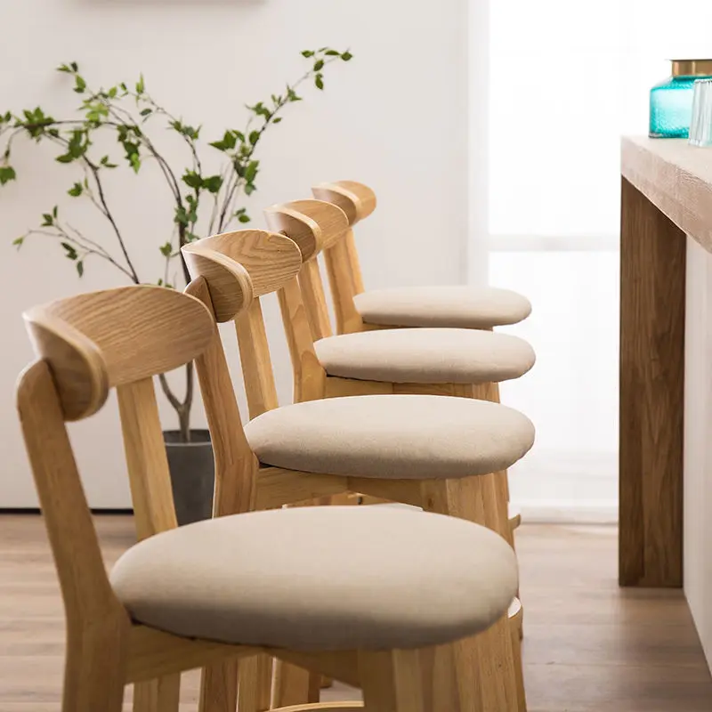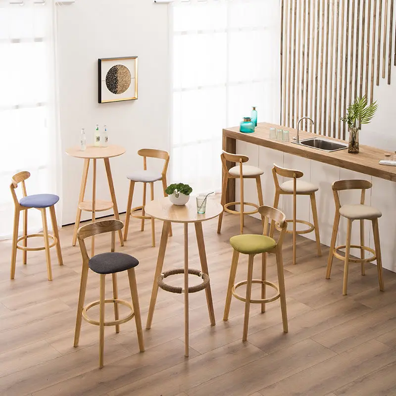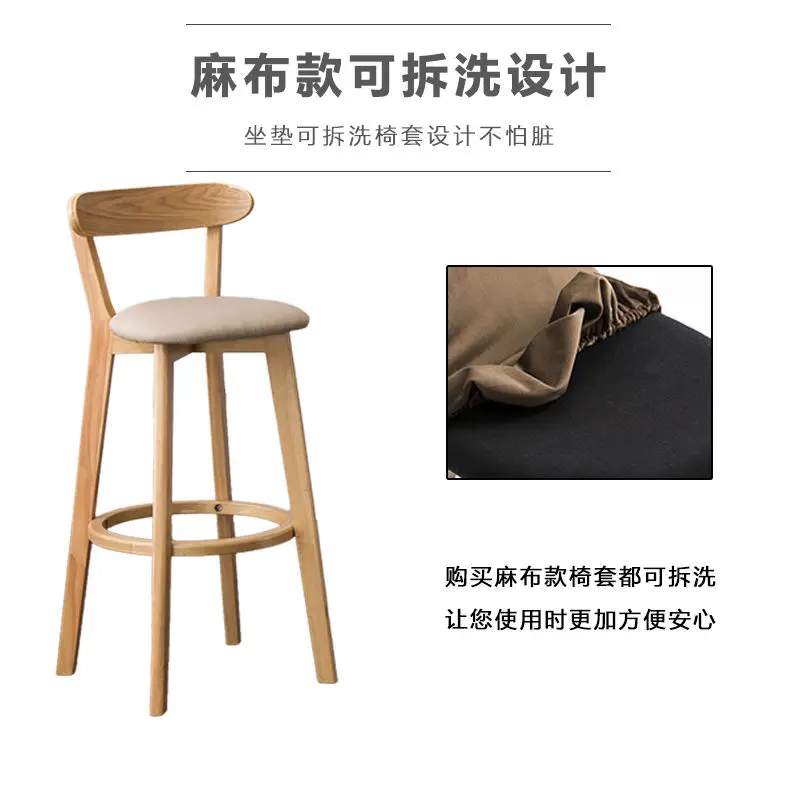 Solid Wood Bar Chair Back Simple North European Home Milk Tea Shop Coffee Shop Retro Bar Chair Front Desk Stool