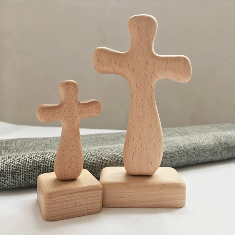 Solid Wooden Christian Cross Decoration Religious Church Ornament for Car Chapel A9LB