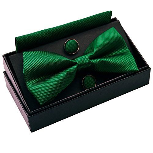 Solido fiocco pre-cravattato fiocco Gemelli Hanky Set per l'abbigliamento collo uomo, verde scuro
