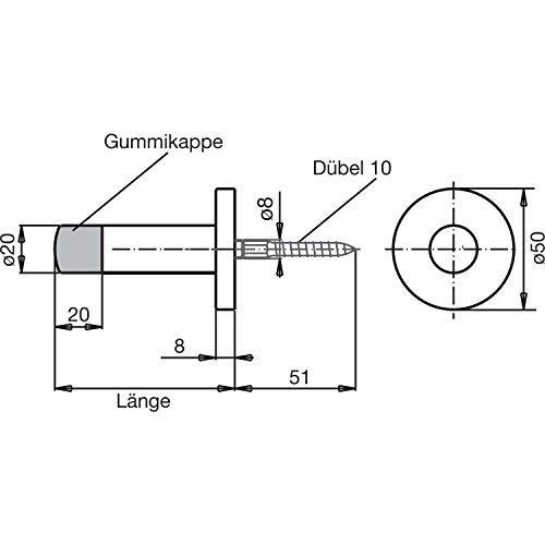Solido muro della porta cuscinetto Ø 20 mm | lunghezza: 80 mm | Fermaporta | Alluminio argento | 1 pezzi