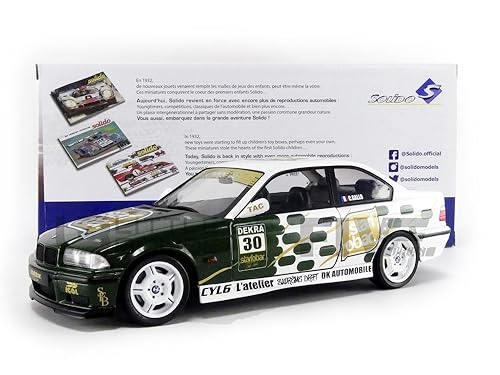 SOLIDO - BMW E36 M3 Nessuna auto in miniatura da collezione, 1803906, White/Green, 1/18
