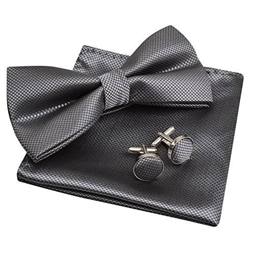Solido pre-legata fiocco fiocco Gemelli Hanky Set per l'abbigliamento collo uomo, grigio scuro