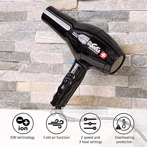 Solis Swiss Perfection 440 - Asciugacapelli Professionali - Phone per Capelli - Tecnologia a Loni - 3 Impostazioni di Temperatura - Funzione Aria Fredda - Nero