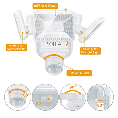 SOLLA Luce Solare Led Esterno, 2000lm, Lampada di Sicurezza ad Energia Solare & Batteria con Sensore di Movimento, Faro Dimmerabile IP65, Bianco