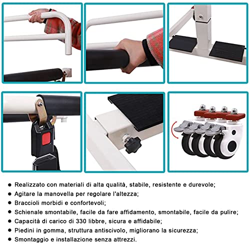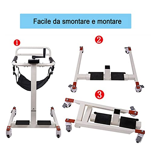 Sollevatore Portatile per Pazienti,Ascensori per Pazienti Sollevatore Multifunzionale per Trasferimento Paziente per Anziani Disabili con Sedile Imbottito con Rotelle Altezza Regolabile A
