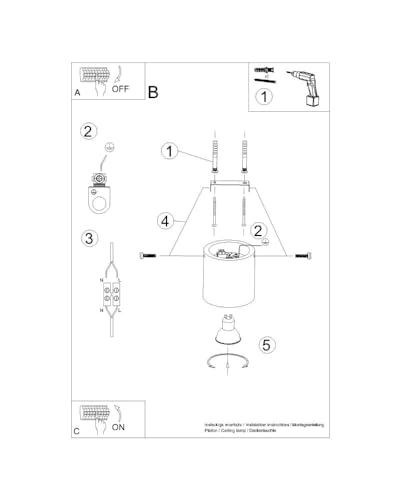 FONTE DI LUCE: Abbiamo installato la sorgente luminosa GU10 (LED), che può essere sostituita rapidamente e in qualsiasi momento. In questo modo non devi sostituire l'intera lampada quando la lampadina smette di funzionare (fredda o calda, potenza della luce - puoi scegliere liberamente ogni volta). I parametri (max.) della singola sorgente luminosa: 40 W, LED 12 W, 50-60 Hz, ~220-230 V.