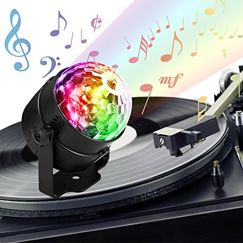 '[diverse modalità]: Sound modalità: più la frequenza del suono è alta, la luce lampeggia rapidamente. Luce modalità: 7 tipi di luce. Si può premere il pulsanti "+" "-sur telecomando per cambiare la velocità di rotazione lumieuse.