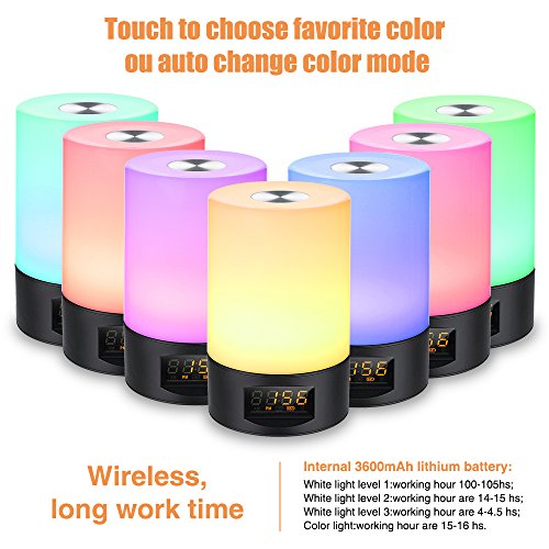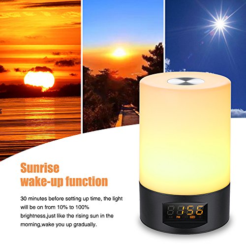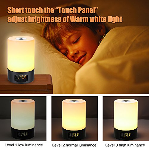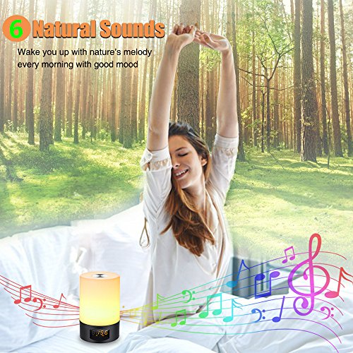 SOLMORE Sveglia Con Luce, Lampada da Comodino con 6 Suoni della Natura e 3 Modalità di Luminosità, Controllo a Tocco, Dimmerabile, con diversi Colori, Camera da Letto per Bambini, Ricaricabile con USB