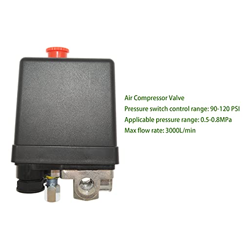 Solnoa 220V 4 Fori Interruttore Pressostato Compressore, Compressore Valvola Aria, Pressostato Compressore Aria (Alluminio e Plastica)
