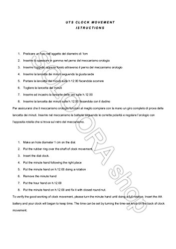 SOLO ORA Meccanismo Orologio Con Lancette Extra Lunghe 40cm.Kit Movimento Orologio UTS Tedesco Forte e Rinforzato,Azienda italiana specializzata.