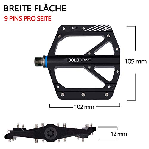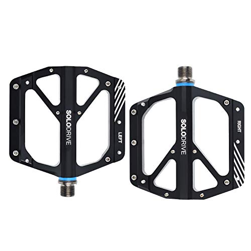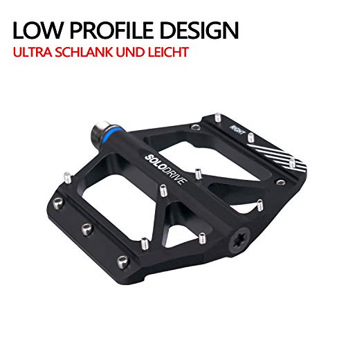SOLODRIVE MTB, pedali per mountain bike in alluminio con cuscinetti sigillati, antiscivolo grazie ai perni sostituibili, pedali piatti da 9/16 pollici, per mountain bike, downhill, bici elettrica