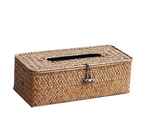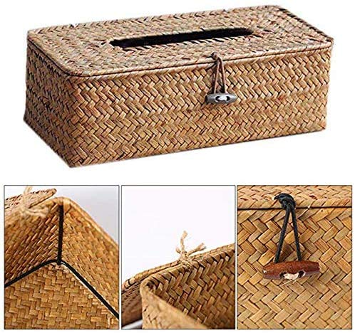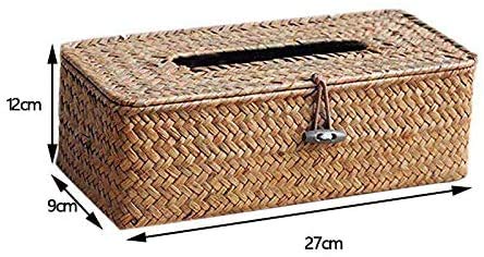 Soloer Retangle Rattan Portatovaglioli per WC Soggiorno Scatola di Tessuti fatti a mano Vimini Porta Tessuti Casa Rettangolare Seagrass Facciale Scatola Decorativa Tessuto Porta Carta