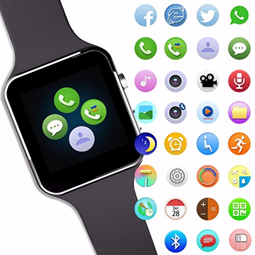 SoloKing Bluetooth 3.0 T60 Orologio Intelligente per Android,Orologio da Polso Telefono 1.54''Curva Schermo con Fotocamera,Sim/TF Card Slot,Smartwatch Fitness Tracker Contapassi,inseguitore del sonno,Notifiche APP Whatsapp Facebook, Cattura Remota,Anti-perso(nero)