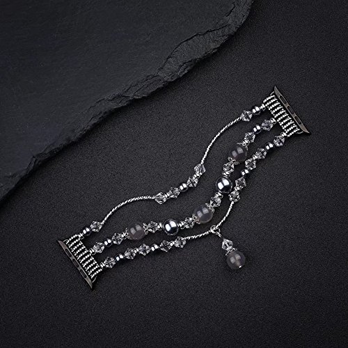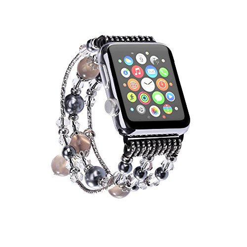 Solomo - Cinturino di ricambio per Apple Watch - [serie gioielli] di lusso, realizzato a mano - elastico, in finta agata e cristallo - per donne/ragazze - compatibile con Apple Watch serie 3/2/1 tutte le versioni
