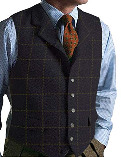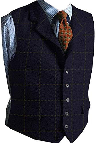 Solove-Suit Gilet da Uomo in Gilet Scozzese Tweed Slim Fit per Groomsmen da Sposa(Navy scuro,XL)