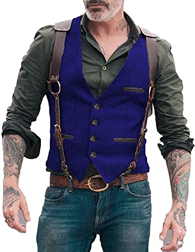 Solovedress Gilet da Abito da Uomo Elegante Tweed Panciotto Casual Smanicato Scollo a V Caccia Matrimonio Lavoro(Blu Reale,XL)