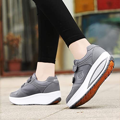 Solshine Scarpe da ginnastica da donna con plateau Wedge con chiusura in velcro, Grigio (grigio.), 37 EU